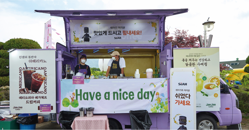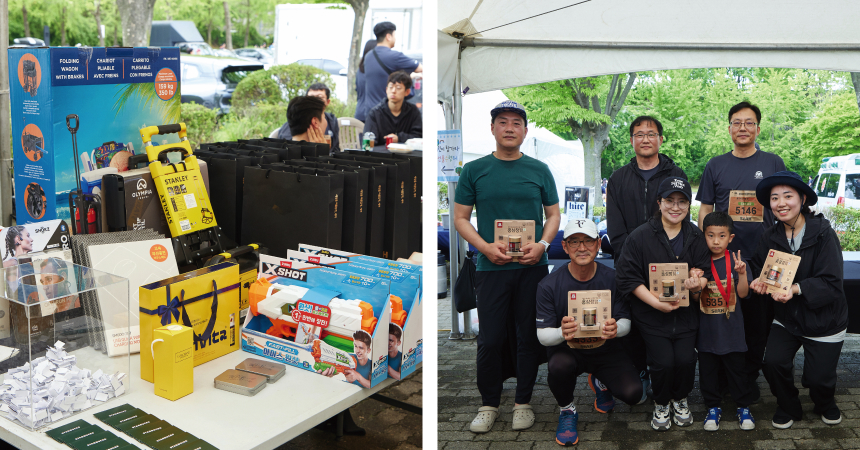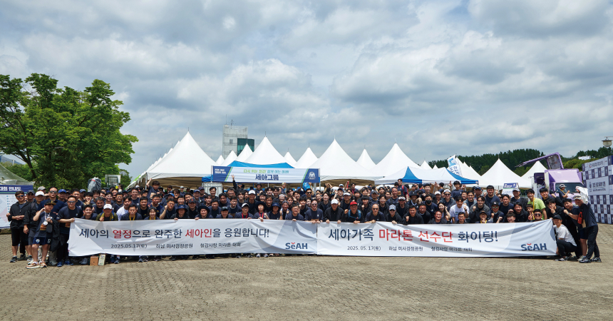 마라톤을 완주한 세아 참가자들은 부스에 마련된 풍성한 뷔페와 시원한 음료로 지친 몸을 달랬고, 이어진 경품 이벤트에서는 음료 쿠폰, 비타민, 홍삼, 장난감 등 푸짐한 선물이 더해져 현장은 웃음과 활기로 가득찼다. 마지막 기념촬영을 위해 카메라 앞에 모인 세아 임직원들은 “세아!"를 힘차게 외치며 서로의 어깨를 맞대고 환한 웃음으로 기념 촬영을 마쳤다. 누구보다 뜨겁게 달리고, 함께 웃으며 하나로 뭉친 세아. 제 18회 철강 마라톤 대회는 단순한 달리기를 넘어, 철강산업의 힘찬 도약과 세아인의 끈끈한 동료애를 다시금 확인하는 소중한 시간이었다.