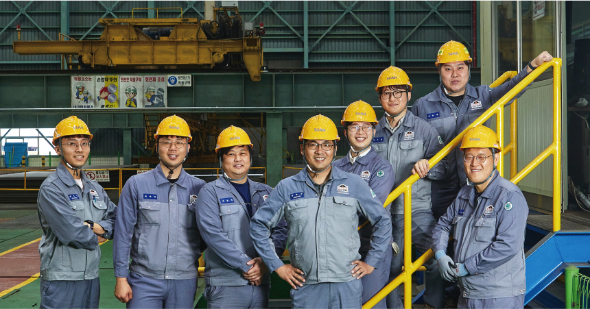 박광진 팀장, 송정훈 과장, 정우석 과장, 전규영 대리, 서인환 대리, 박정영 대리, 신우익 대리, 이주연 사원스마트팩토리는 이제 철강산업에서도 생존을 위한 필수 전략으로 자리 잡고 있다. 세아제강 SMART기술팀은 디지털 전환(DX) 및 인공지능(AI) 기술을 현장에 접목해 생산성과 품질, 안전 수준을 한층 높이며 새로운 제조 패러다임을 만들어가고 있다.