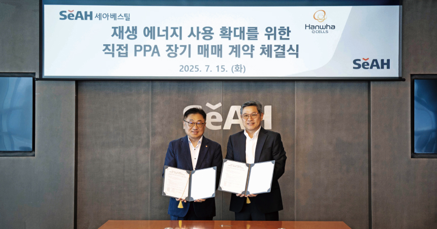 통해 세아베스틸과 한화큐셀은 RE100 달성을 위한 지속 가능한 파트너십을 구축하게 됐다.