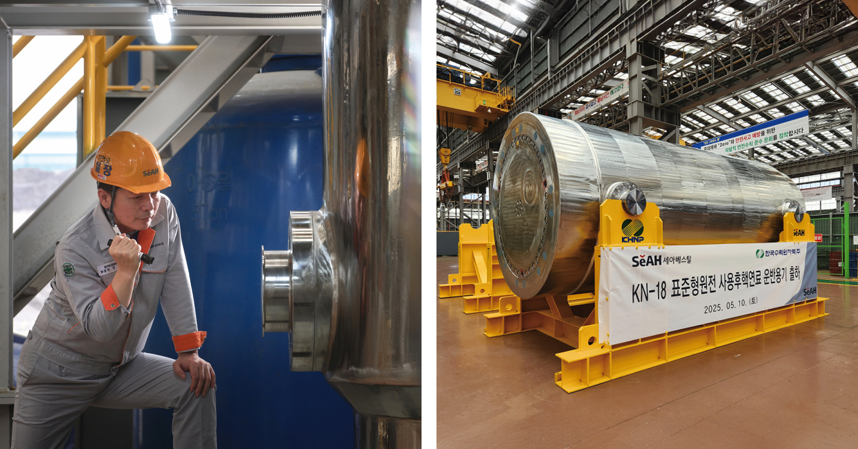 또한 사용후핵연료 영구처분 시장 선점을 위해 한국원자력연구원과 함께 처분용기를 개발하며 미래 경쟁력을 준비하고 있다. 현재의 과제에 집중하면서도 한발 앞서 미래를 준비하는 세아베스틸 원자력사업팀. 이들은 국가 에너지 안보와 국민 안전을 지키는 엄중한 사명을 품고, 원자력 산업의 전 주기를 책임지는 핵심 플레이어로 성장하고 있다.