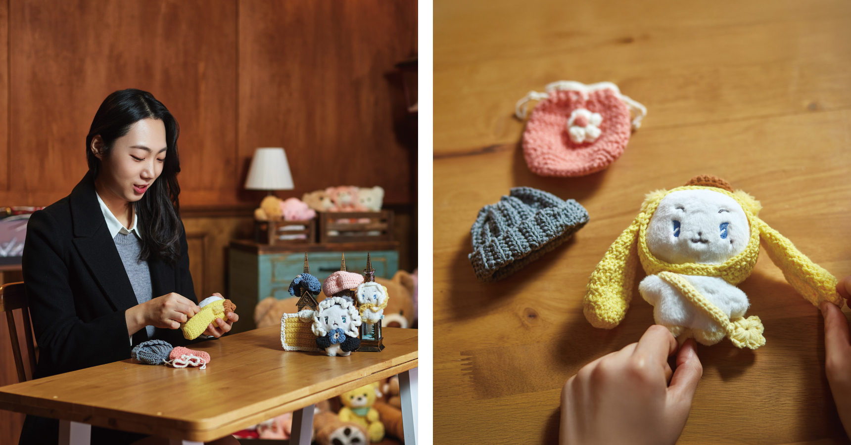 박수정 매니저가 뜨개질을 처음 접한 건 친구가 들고 있던 작은 지갑 때문이었다. 어느 날 친구가 실로 짠 붕어빵 모양의 지갑을 보여주었고, 그 모습이 왠지 모르게 마음을 끌었다. 어디에서 구한 것이냐고 묻자 친구는 자신이 직접 만든 것이라며 다른 작품들도 보여주었다. 그 순간부터 뜨개질에 대한 호기심이 싹트기 시작했다.